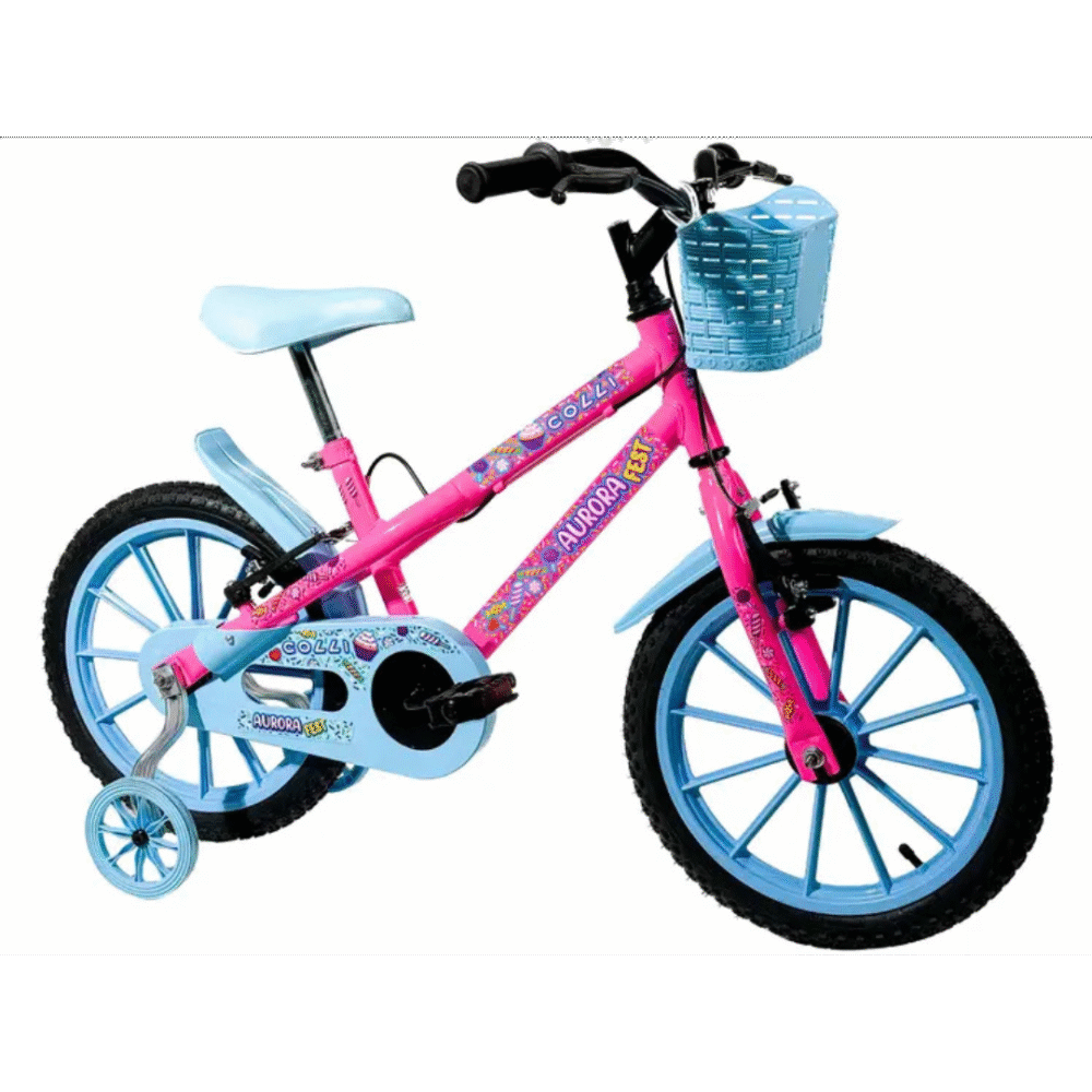 Bicicleta Infantil Aro 16 Colli Aurora Fest Rosa Neon – Rodinhas e Cestinha